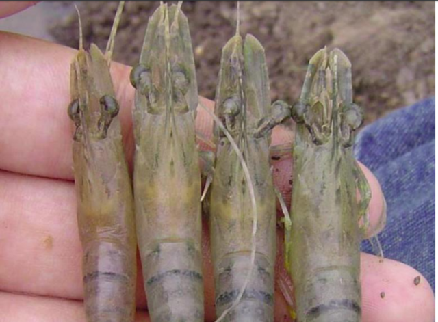 Hình 11: Tôm sú chết do nhiễm bệnh đầu vàng YHV/GAV.