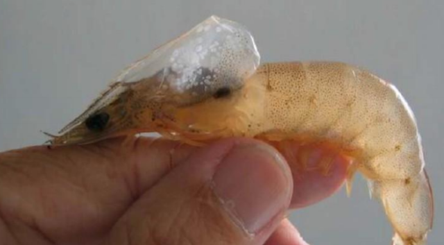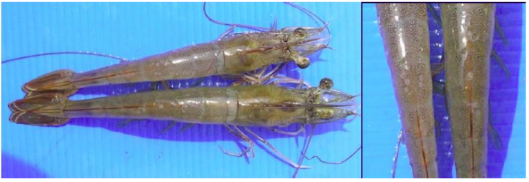Hình 3:Tôm thẻ chân trắng nhiễm virus đốm trắng WSSV.