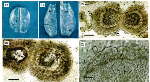 Hình 6:Tôm bệnh đốm trắng do vi khuẩn (Wang et al., 2000). Soi mẫu tươi dưới kính hiển vi đốm trắng có dạng lan tỏa hình địa y với viền kiểu gờ khía tròn ở giữa rỗng.