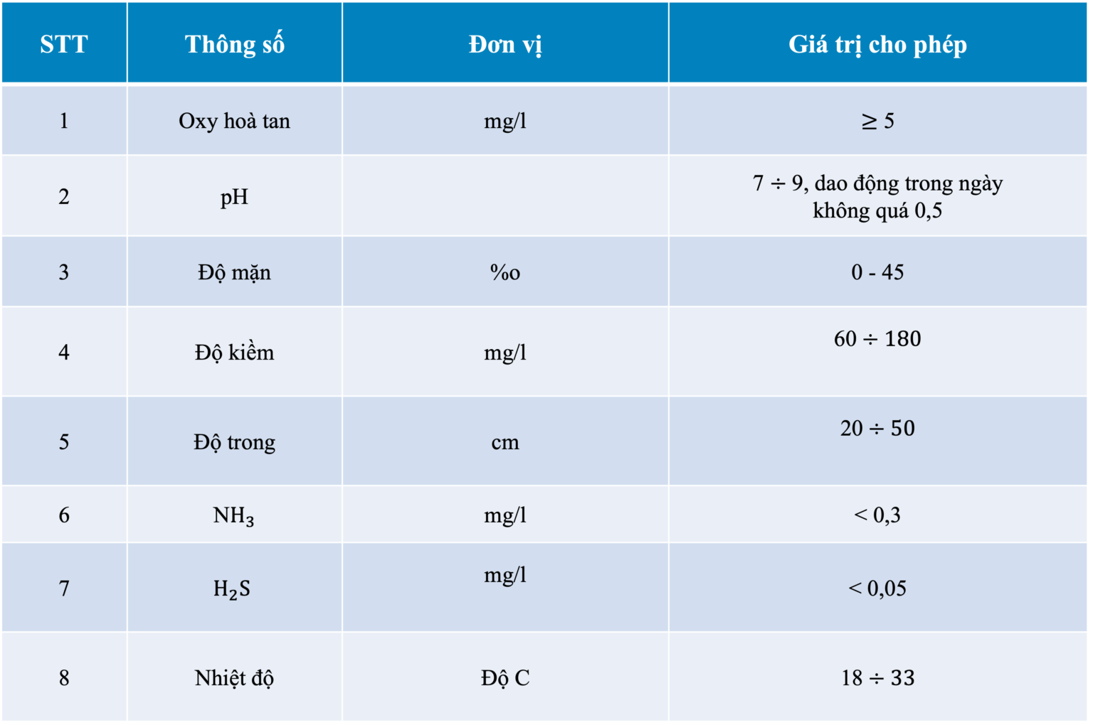 – Điều chỉnh pH trong ao nuôi ở mức độ 7.5 – 8.5, biến động sáng và chiều không vượt quá 0.5 độ