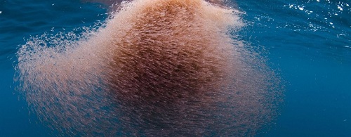 + Khi mặt trời lên, số lượng tôm trong đàn là khá ít chỉ 5-6 con. Khi chúng bắt đầu đi kiếm ăn ở khắp đáy ao gặp đàn khác và gộp lại với nhau. Qúa trình này được lặp lại đến khi thành một đàn lớn. Rod McNeil không biết tôm lớn như thế là bao nhiêu, nhưng ông thấy có vài ngàn con trong đó.