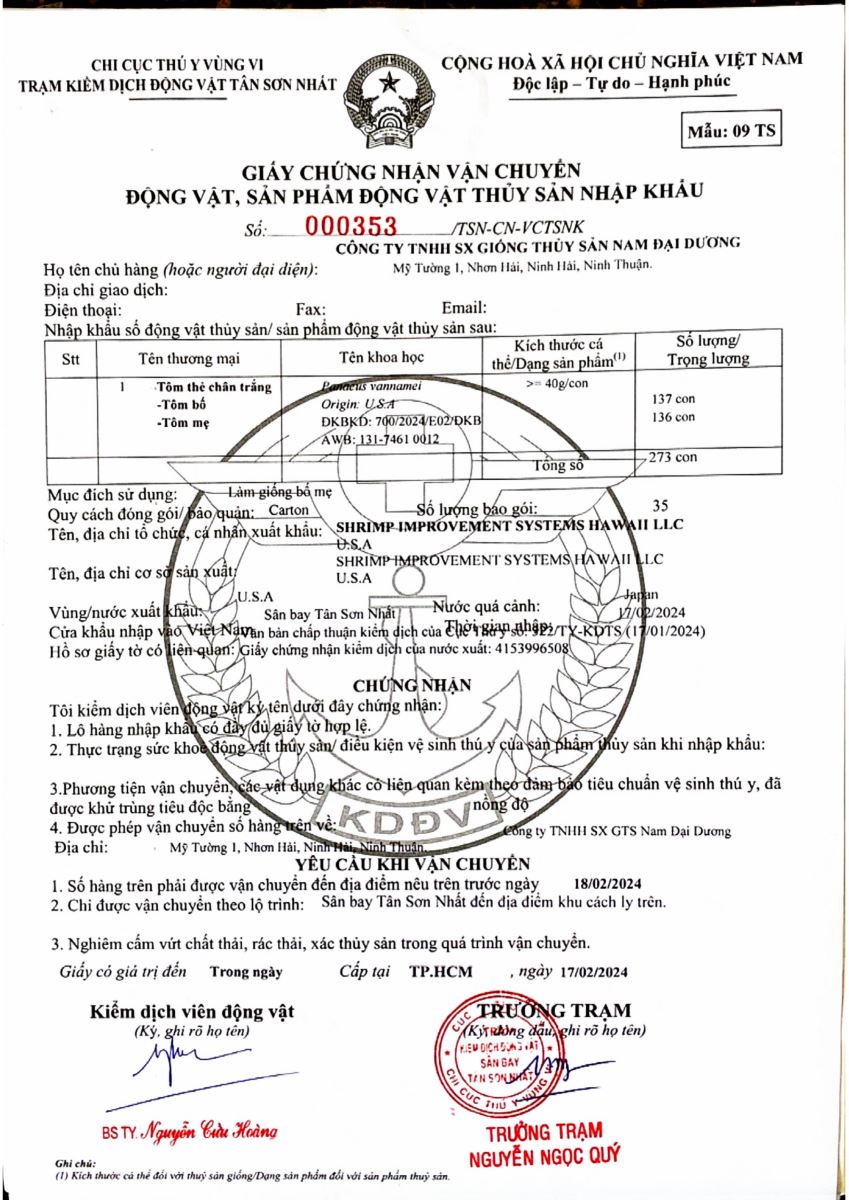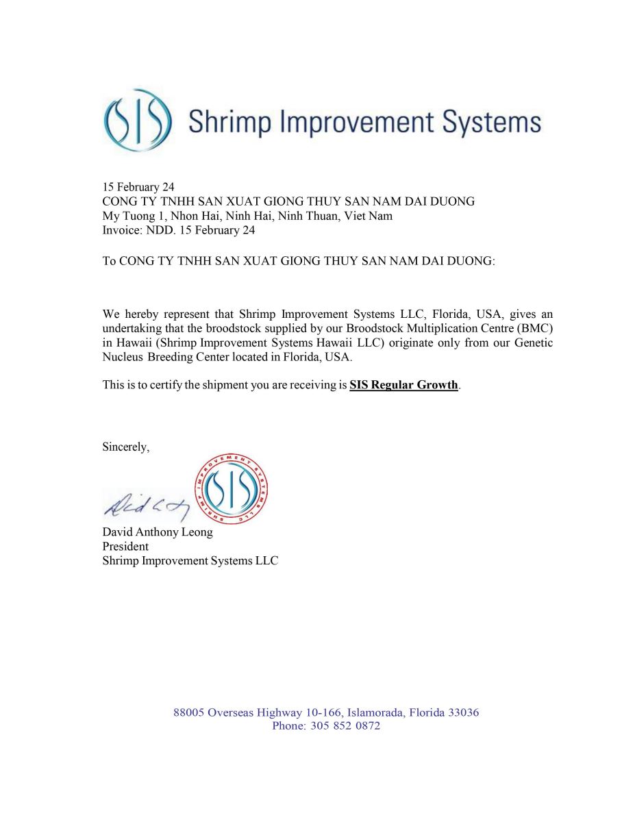 Hiện nay, Công ty TNHH SX giống thuỷ sản Nam Đại Dương đã cung cấp sản phẩm tôm giống chất lượng đi khắp các tỉnh trong cả nước. Với tâm huyết và kinh nghiệm nhiều năm cùng với các cơ sở vật chất hiện đại trong sản xuất tôm giống, Nam Đại Dương đã liên tục phát triển và lớn mạnh. Hiện nay sản phẩm tôm giống chất lượng cao của Nam Đại Dương đã được tao uy tín và niềm tin mạnh mẽ đối với người nuôi tôm cả nước.