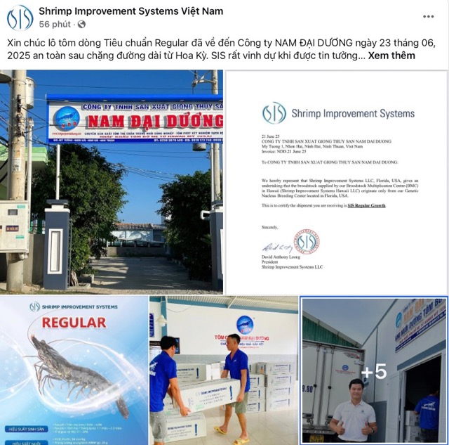 ngày 23/06/2025 Công Ty Sản Xuất Giống Thủy Sản Nam Đại Dương đã tiếp nhận lô Tôm Bố Mẹ SIS – dòng Regular Growth từ Hoa Kỳ